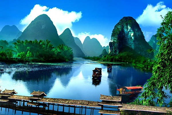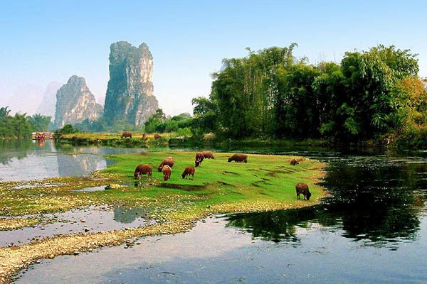 桂林,位于广西东北部,是世界著名的旅游胜地和历史文化名城。地处漓江西岸,以盛产桂花、桂树成林而得名。典型的喀斯特地形构成了别具一格的桂林山水,桂林山水是对桂林旅